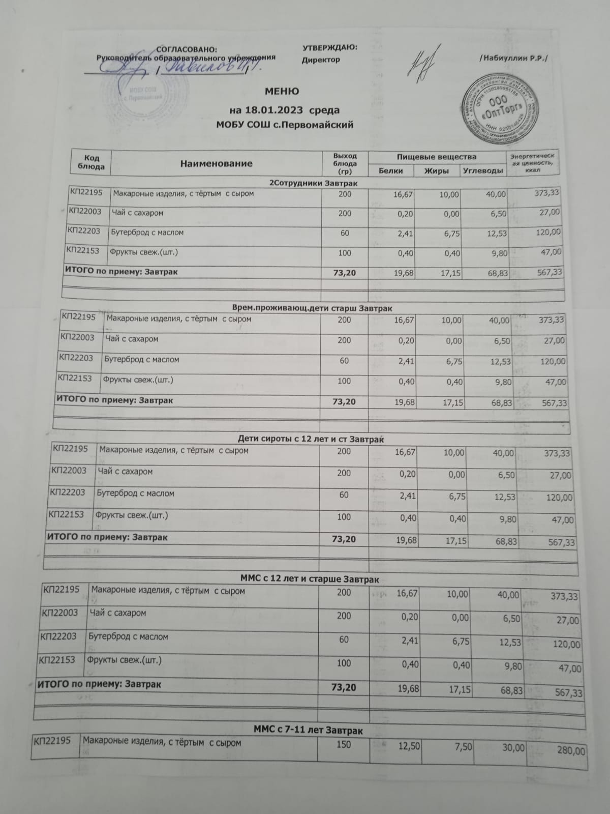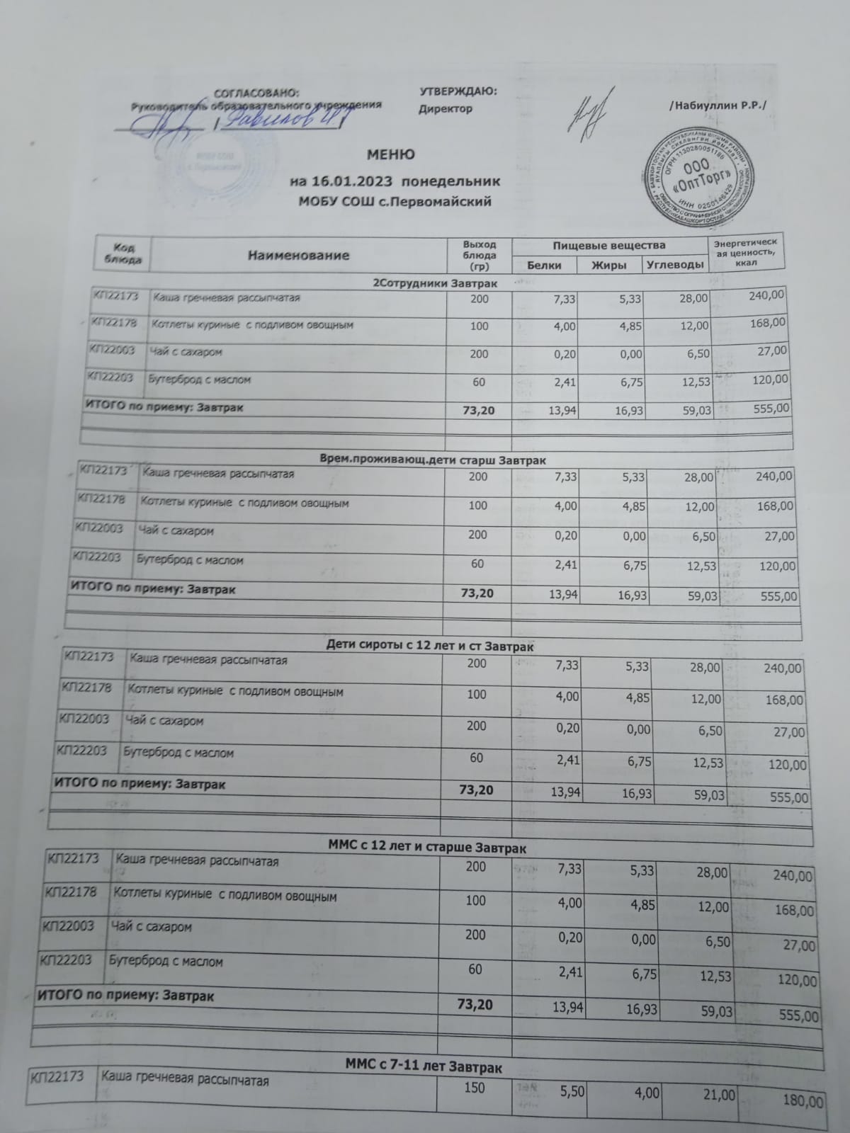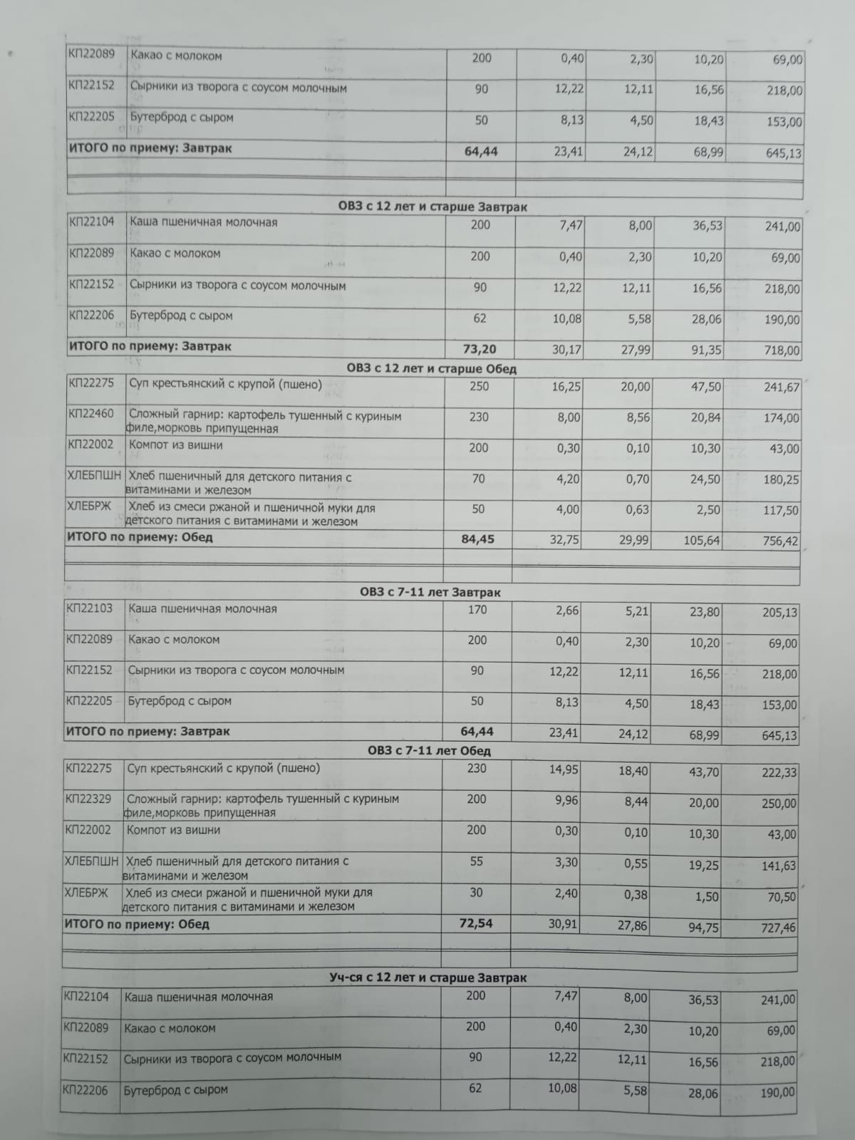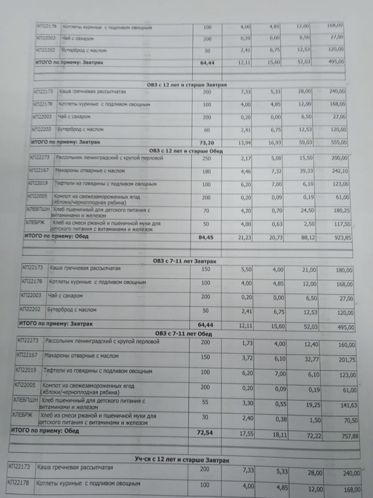Организация питания в образовательной организации